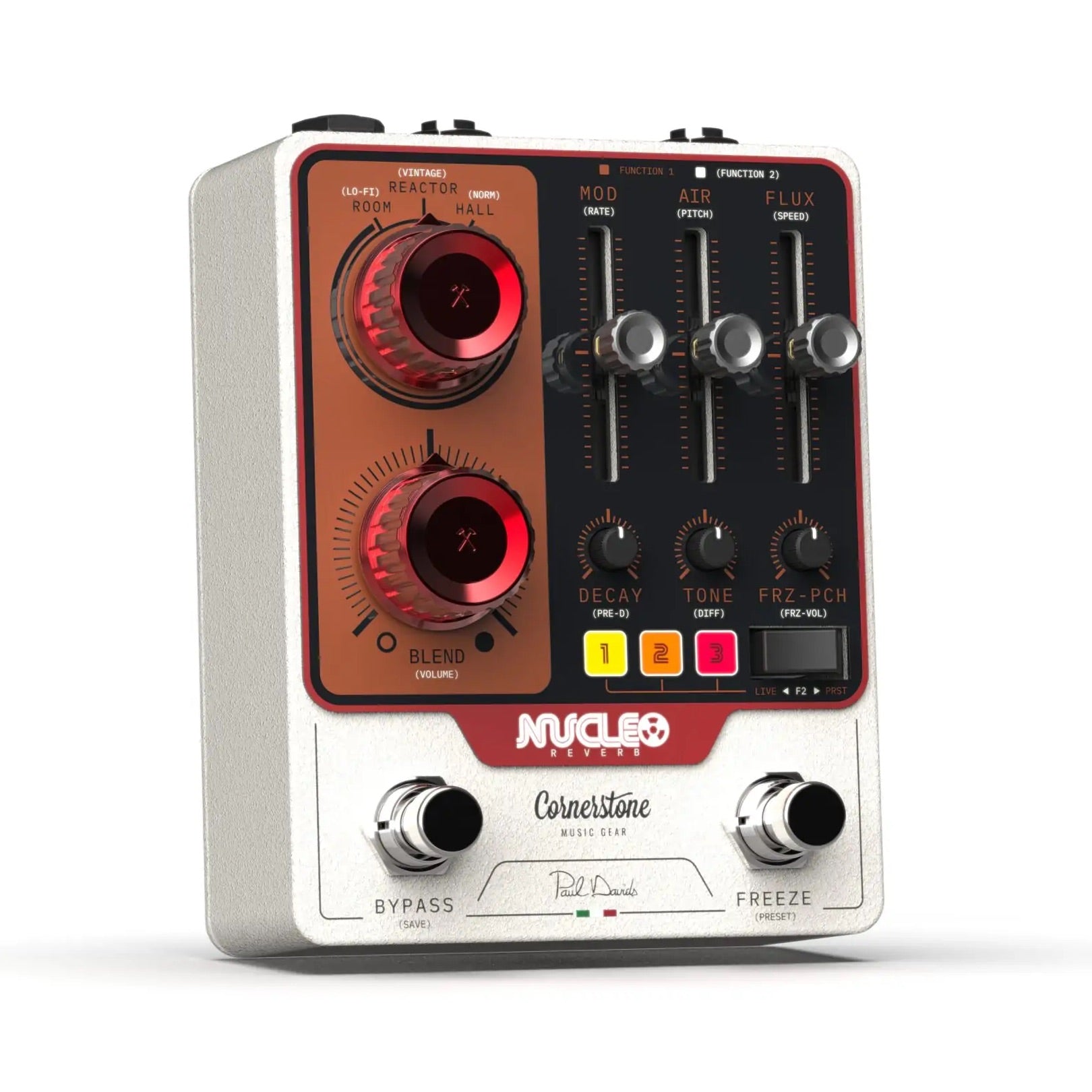 Born from years of research and a close collaboration with Paul Davids, Nucleo delivers lush textures, evolving atmospheres, and immersive soundscapes that go far beyond traditional reverb pedals.